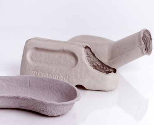 Made from biodegradable over-issued clean newspaper and designed for single-use; the female urinal is used once then disposed of which eliminates the infection risk associated with reusable urinals and toileting products.